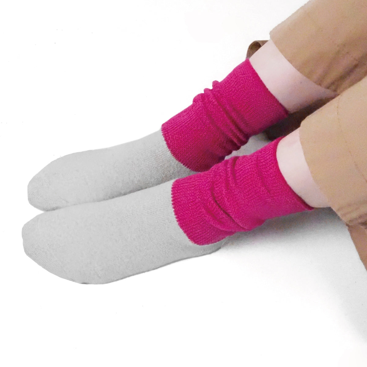 カラーがポップで可愛らしい、足をふんわりと包み込む足首ウォーマ付きソックスです。 通常よりも多くの糸量を使用した足底はパイル編みにより、厚手になっております。 指先の汗もたっぷり吸収し、冷え対策もばっちり。